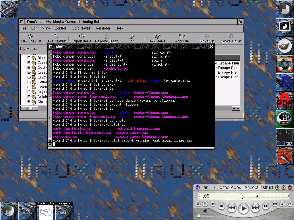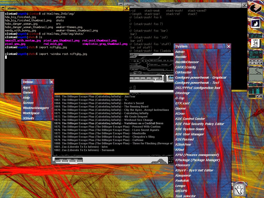 For some reason I still use Window Maker after all these years. Once upon a time I gazed in awe of the old graybeards who still used FVWM and TWM, and here I am many years later using a mostly abandoned window manager. At least it can look nice.